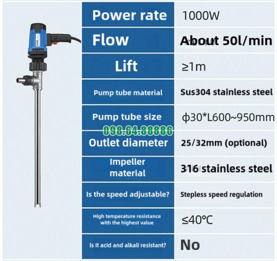 Bơm thùng phuy chịu nhiệt 260 độ JDT-1300W-G260