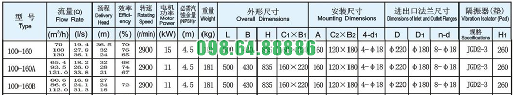 Máy bơm cấp nước trục đứng, bơm inline, bơm tăng áp ISG100-160, IRG100-160 15kw, 100m3, 32m