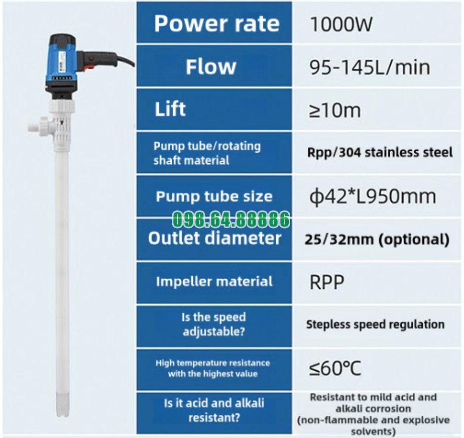 Trong bối cảnh doanh nghiệp ngày càng chú trọng đến hiệu quả vận hành, an toànlao động và tối ưu chi phí, việc lựa chọn thiết bị phù hợp đóng vai trò then chốt.Bơm cắm điện thùng phuy model JDT-1000W-PVDF không chỉ là thiết bị bơm thôngthường mà còn mang lại nhiều giá trị thiết thực cho doanh nghiệp.
