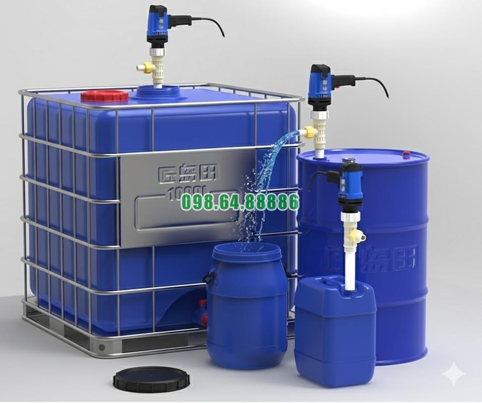 Thiết bị dạng bơm thùng phuy giúp chuyển đổi điểm bơm nhanh, phù hợp kho hóa chất, kho dầu, khu pha trộn… nơi thường có nhiều thùng phuy và nhu cầu bơm thay đổi liên tục.