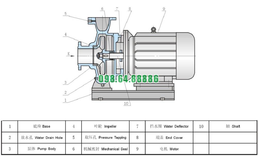 Bơm nước ly tâm trục ngang SLW80-ISW80-100 bao gồm các bộ phận chính như sau: