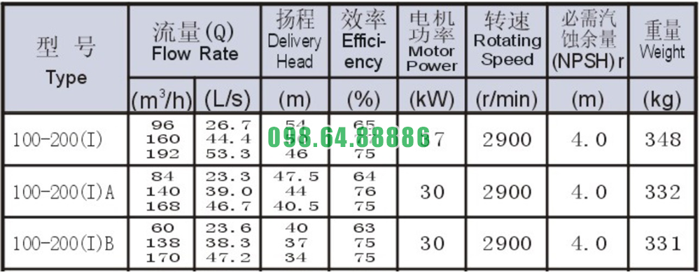 Bảng thông số kỹ thuật bơm nước li tâm trục ngang SLW100-ISW100-200-I bị lỗi