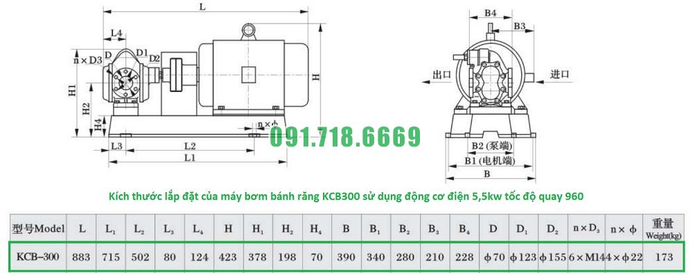 Bản vẽ kỹ thuật của bơm bánh răng KCB300 gang thép áp suất 2.8 Bar lưu lượng 18 m3/h