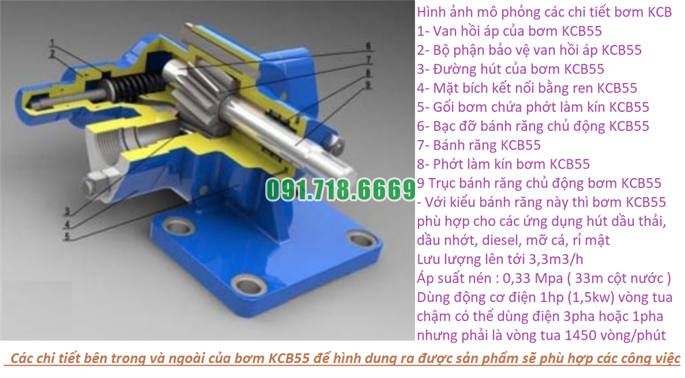 Ảnh đặc điểm chi tiết của bơm bánh răng KCB55 hiệu suất 33.3 lít/phút