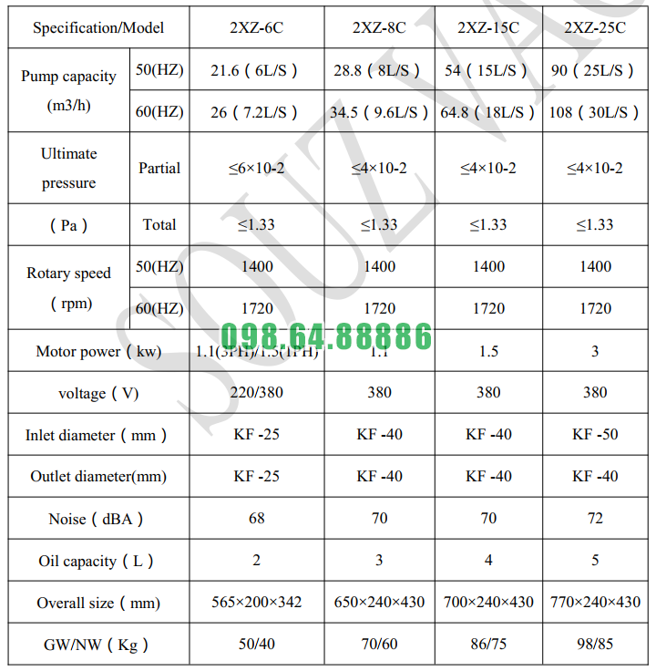 Bơm chân không thô model 2XZ-25C