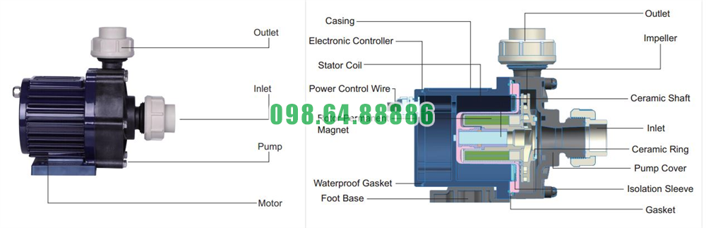 - Dẫn động từ (Magnetic Drive) giúp giảm ma sát, tránh hao mòn cơ khí, tăng tuổi thọ bơm.