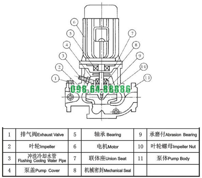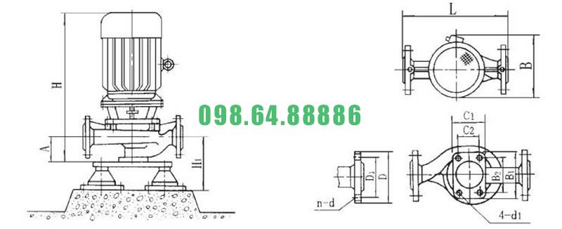 Bơm ly tâm trục đứng model ISG25-125 cột áp đẩy cao 20m