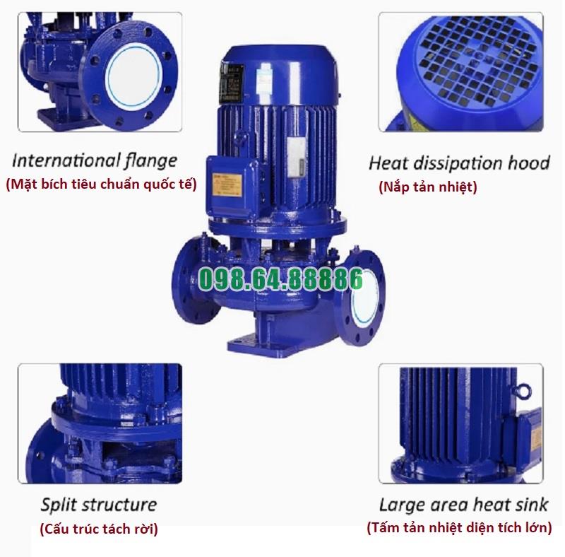 Máy bơm ly tâm trục đứng, bơm đường ống, bơm lùa ISG65-250B, IRG65-250B 11kw